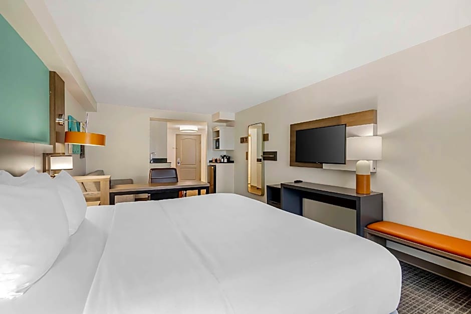 This suite features a 40-inch flat-screen TV and an clock radio with MP3 connection. A microwave, refrigerator, and sofa bed are also included.